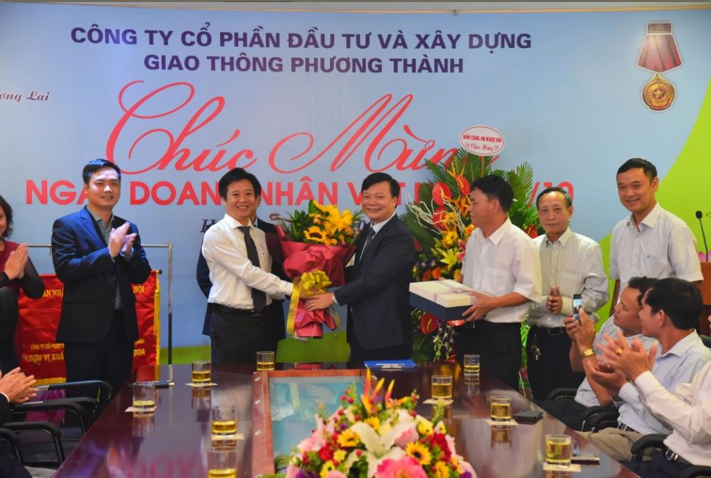 Nhân ngày doanh nhân Việt Nam 13 tháng 10, Ban lãnh đạo và Công đoàn Công ty CP Đầu tư và Xây dựng giao thông Phương Thành đã long trọng tổ chức buổi lễ Chúc mừng và Công bố Quyết định số 3465/QĐ-UBND ngày 06/7/2018 của UBND thành phố Hà Nội tặng cờ Thi đua xuất sắc năm 2017 cho Công ty Phương Thành và Bằng khen cho Tổng Giám đốc Phạm Văn Khôi. Tham dự buổi lễ có sự hiện diện của Ban lãnh đạo Công ty, các cán bộ chủ chốt khối phòng ban và đại diện lãnh đạo các công trường. Ngoài ra, buổi lễ còn có sự tham dự của Lãnh đạo Đảng bộ, UBND địa phương nơi Công ty đặt trụ sở và nhiều bạn bè, đồng nghiệp trong ngành Giao thông.