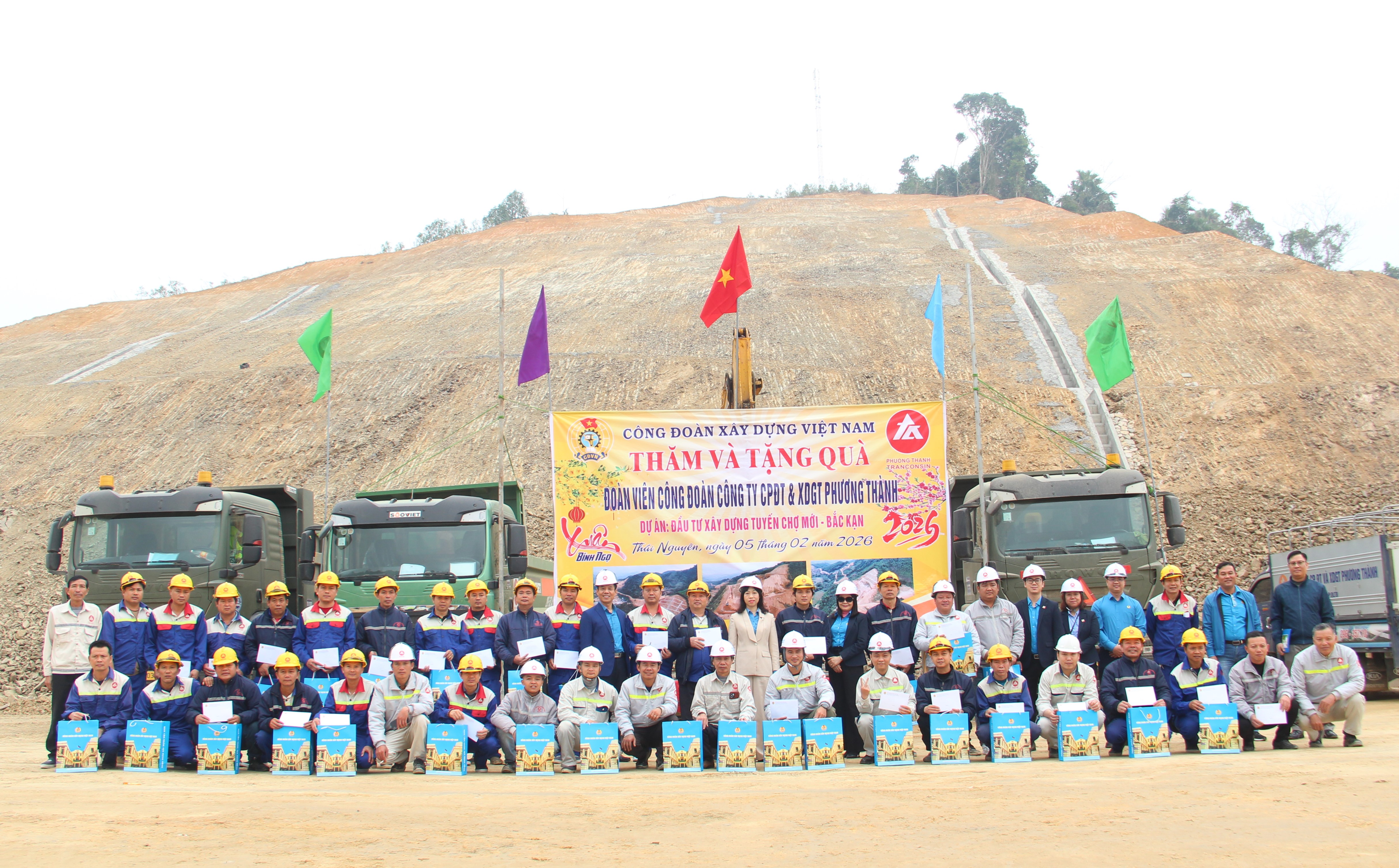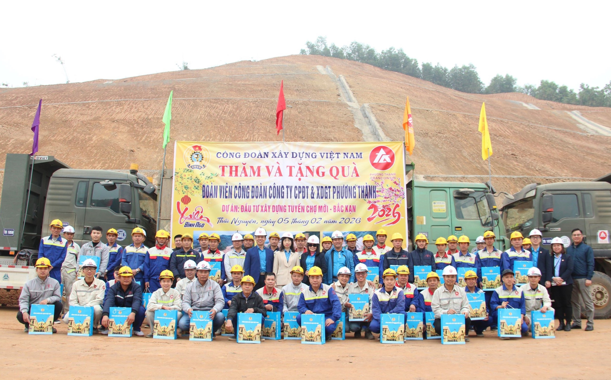 Tham dự có đồng chí Võ Quang Lâm, Phó Tổng Giám đốc, Chủ tịch Công đoàn Công ty Cổ phần Đầu tư và Xây dựng giao thông Phương Thành; các đồng chí trong Ban Chấp hành Công đoàn Công ty cùng đại diện lãnh đạo Ban Quản lý dự án và đông đảo đoàn viên, người lao động tại công trường.