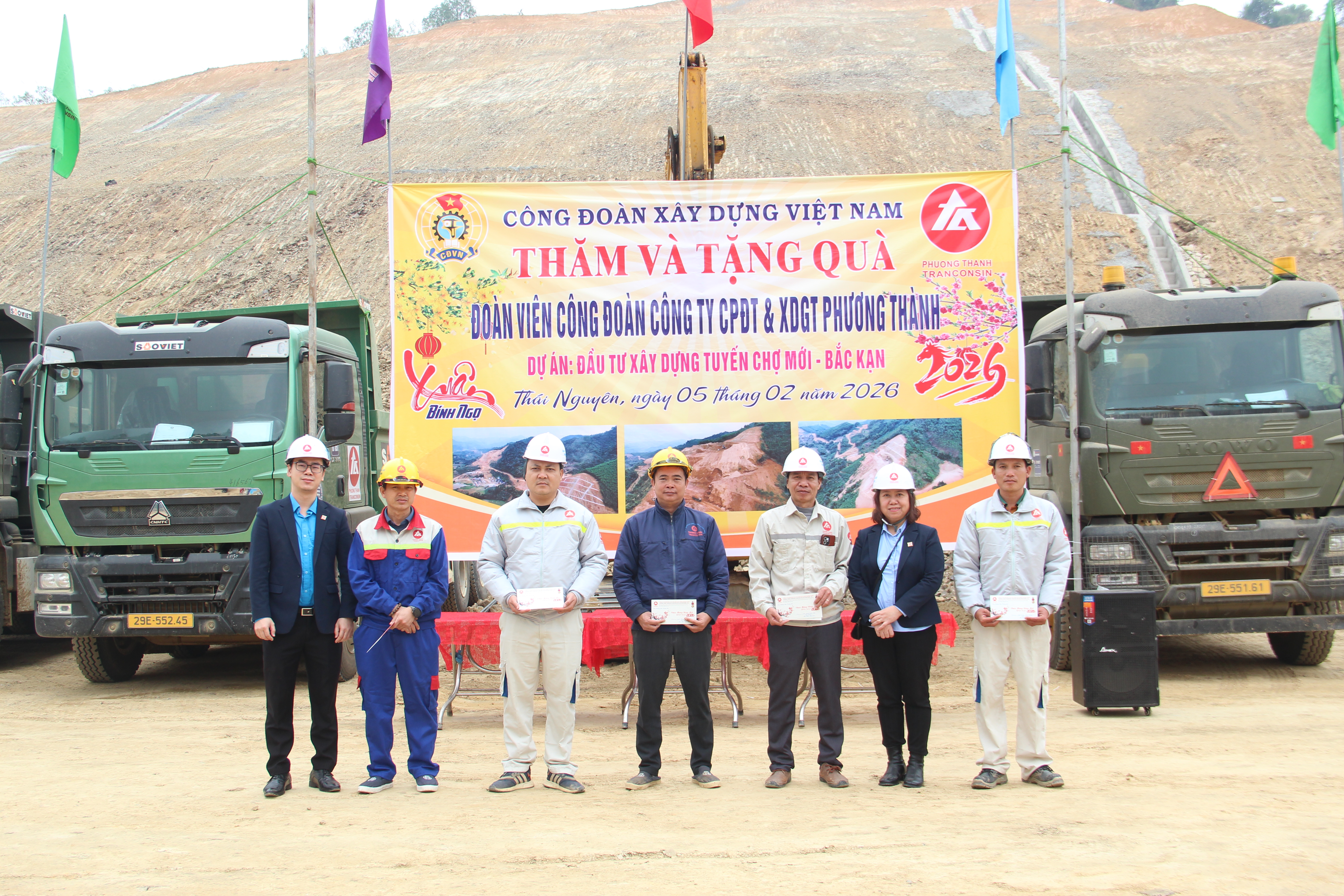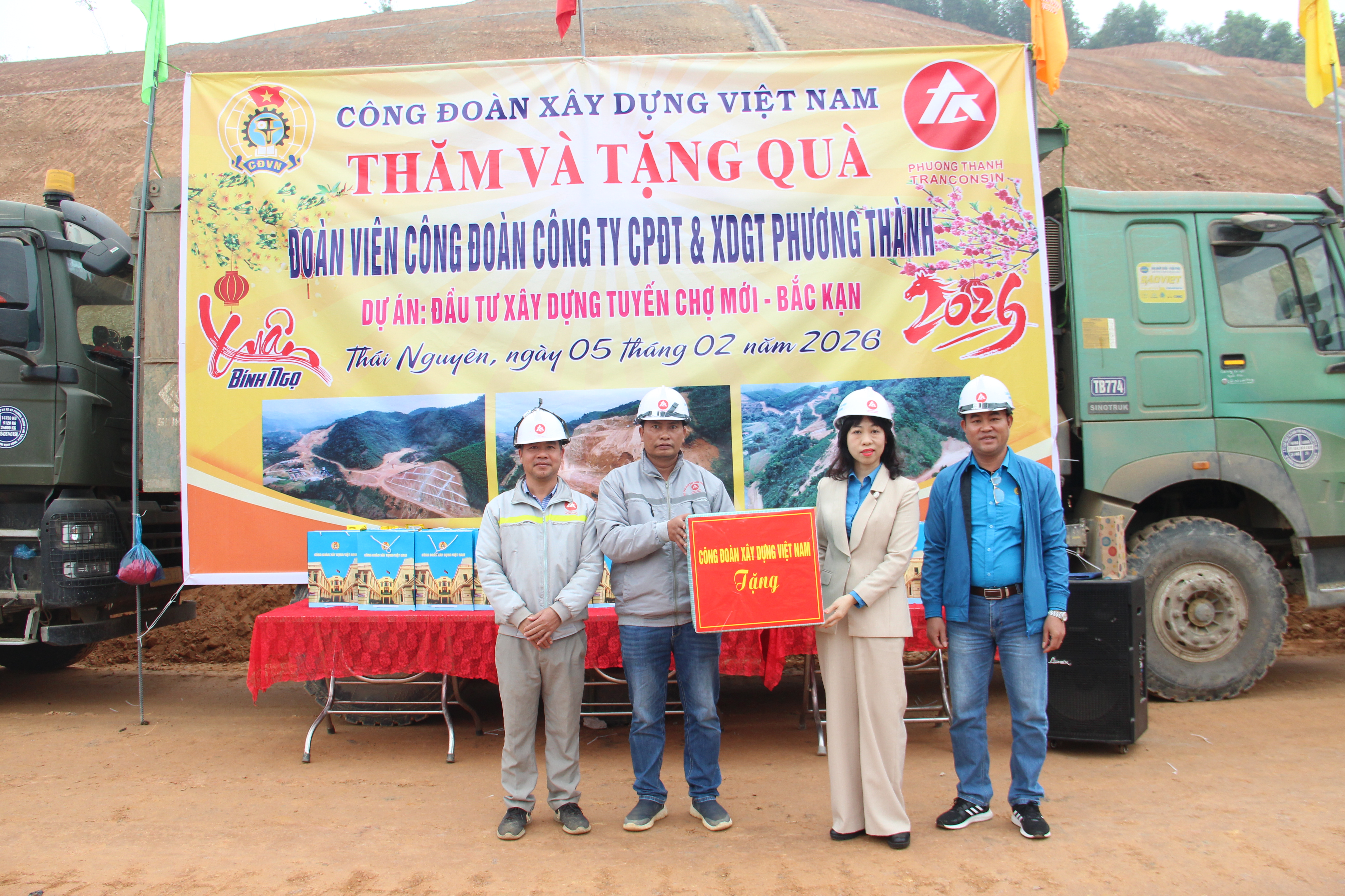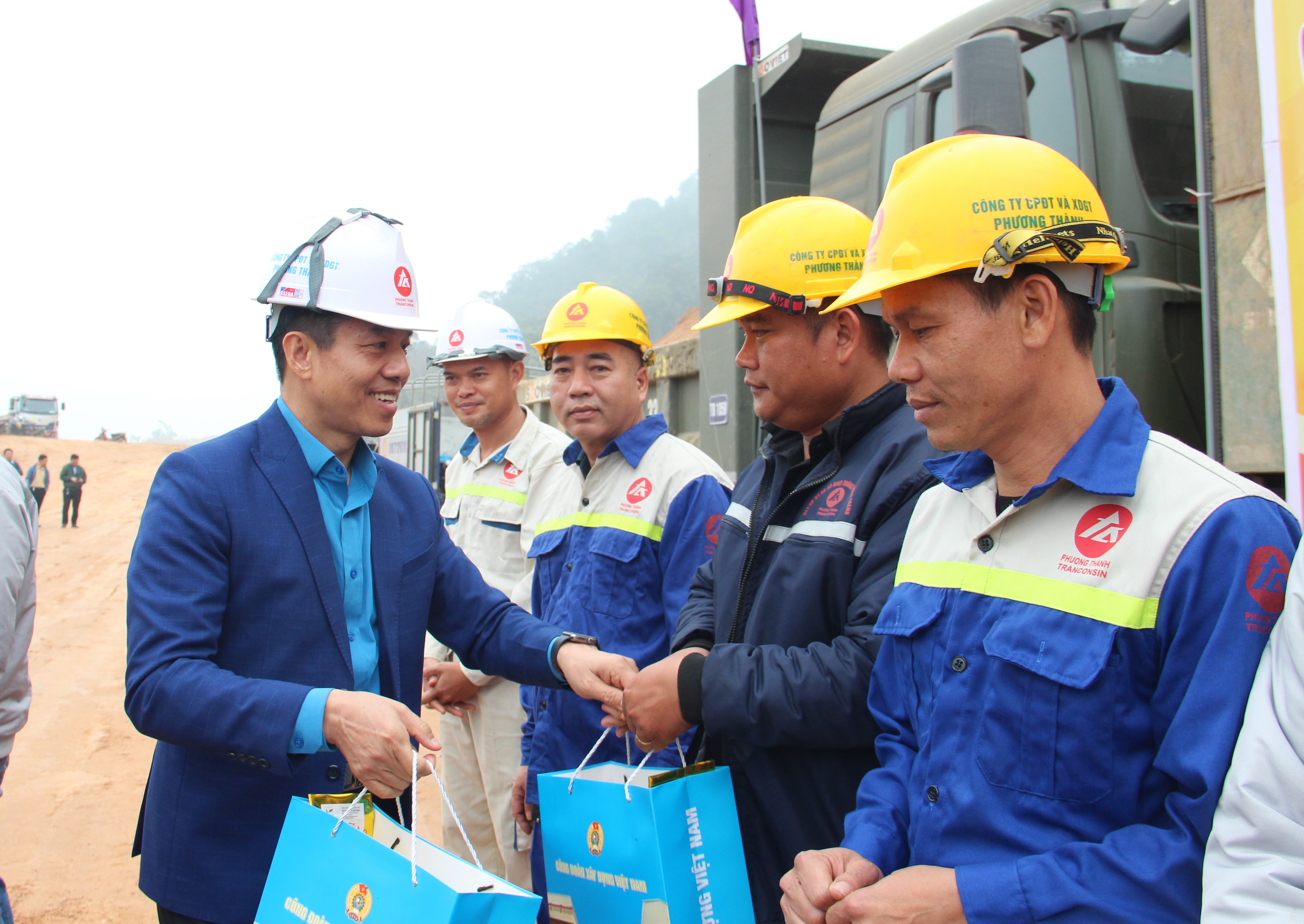 Đến thăm và trao quà tới đoàn viên, người lao động, đồng chí Nguyễn Ngọc Huyền, Phó Chủ tịch Công đoàn Xây dựng Việt Nam đã biểu dương những nỗ lực, cố gắng của tập thể cán bộ, kỹ sư, công nhân Công ty Cổ phần Đầu tư và Xây dựng Giao thông Phương Thành trong quá trình tổ chức thi công dự án trọng điểm của ngành Xây dựng. Đồng chí nhấn mạnh, việc thi công bảo đảm tiến độ, chất lượng, an toàn và hiệu quả không chỉ có ý nghĩa đối với sự phát triển của doanh nghiệp mà còn góp phần quan trọng vào việc hoàn thiện hạ tầng, thúc đẩy phát triển kinh tế – xã hội của địa phương và khu vực.