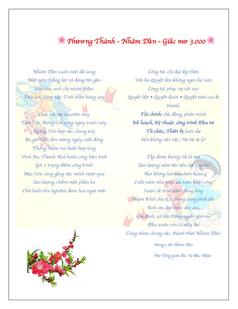 Bài thơ xuân và cũng là giao nhiệm vụ của P.TGĐ Vũ Đức Nhận