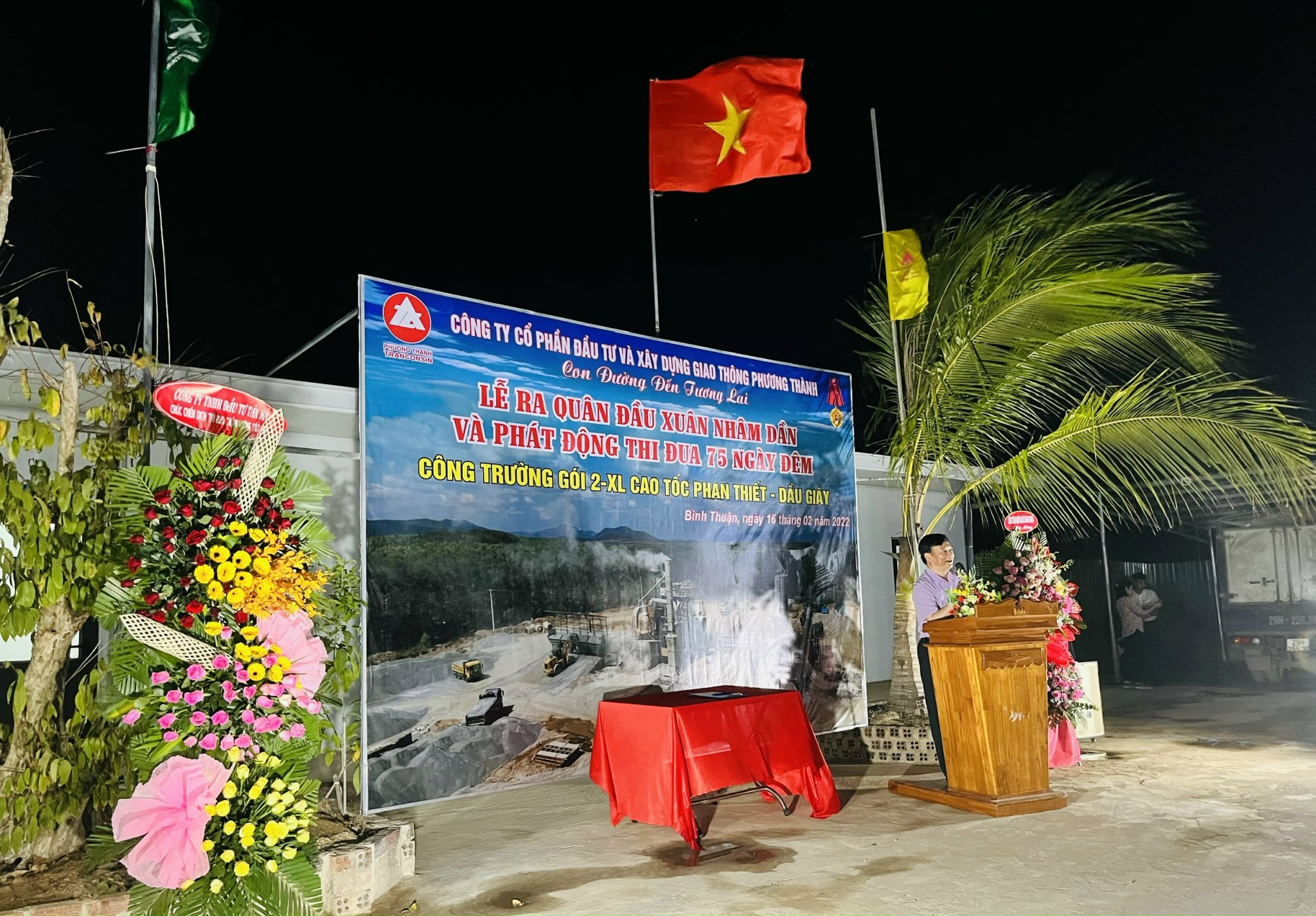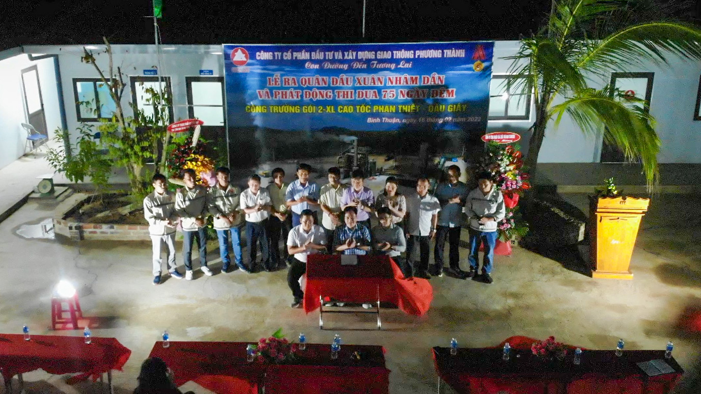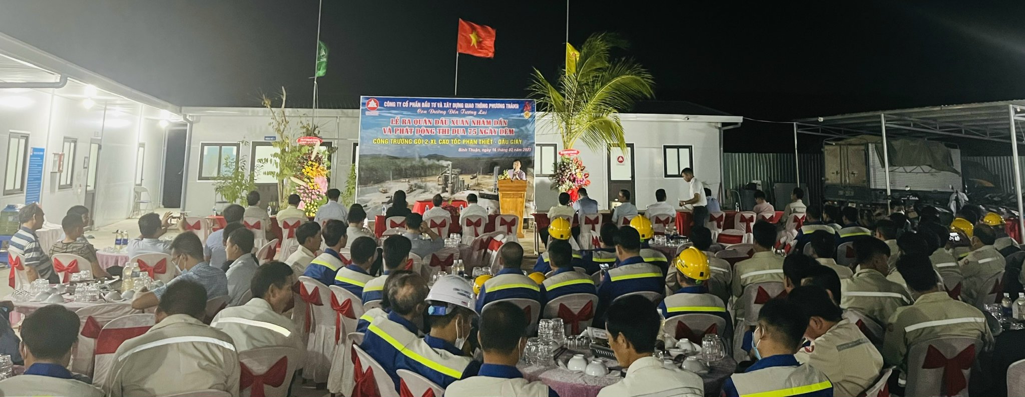 Ngày 16/02/2022, trong không khí của những ngày đầu xuân năm mới và hướng tới mục tiêu về đích đúng – trước thời hạn, chào mừng kỷ niệm 47 năm Ngày giải phóng Miền Nam, thống nhất đất nước (30/4/1975-30/4/2022) Công ty Phương Thành long trọng tổ chức Lễ ra quân đầu xuân Nhâm Dần và phát động thi đua 75 NGÀY ĐÊM (từ ngày 15/02/2022 đến ngày 30/4/2022) đối với công trường số 2-XL cao tốc Phan Thiết – Dầu Giây để nhằm huy động cao nhất mọi nguồn lực (thiết bị, vật tư, tài chính, con người), tinh thần hăng say lao động của mỗi cán bộ công nhân viên, của mỗi đơn vị, tạo thành sức mạnh tổng hợp, đoàn kết nhất trí, chủ động sáng tạo trong mọi nhiệm vụ được giao, nhằm đạt được các mục tiêu về tiến độ, khối lượng, góp phần vào việc hoàn thành kế hoạch sản xuất kinh doanh của công ty năm 2022 cũng như góp phần vào hoàn thành tuyến đường cao tốc quan trọng của quốc gia, phục vụ phát triển kinh tế địa phương và cả nước.