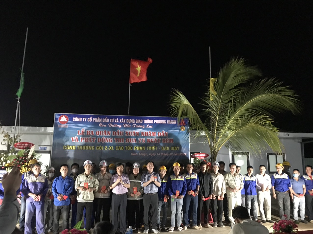 Lễ phát động thi đua có sự tham dự của Đại diện Chủ đầu tư, TVGS, lãnh đạo địa phương, lãnh đạo các nhà thầu liên danh và các đối tác cùng toàn thể CB CNV công trường Gói 2 Phan Thiết – Dầu Giây.