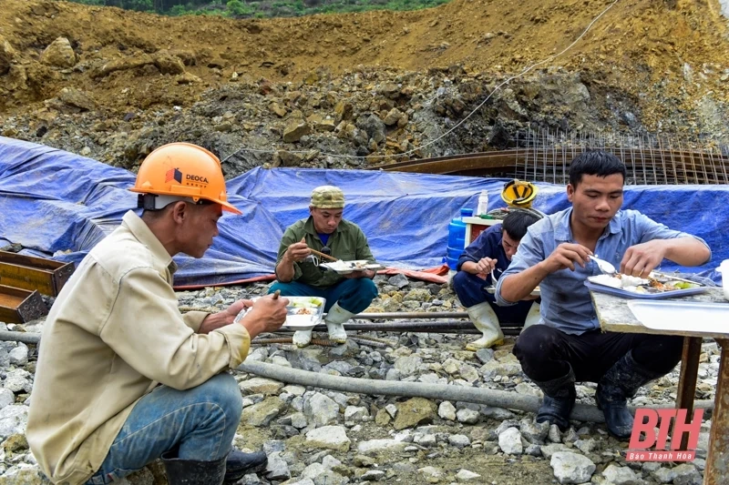 Các cán bộ công nhân kỹ thuật được bố trí ăn ngay tại chỗ để cố gắng đẩy nhanh tiến độ đề ra.