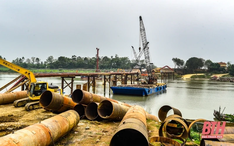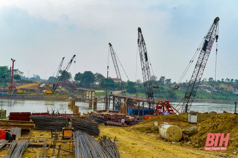 “Nhà thầu đã huy động hơn 80 công nhân cùng rất nhiều máy móc. Mặc dù thi công phụ thuộc vào mực nước sông Mã, có lúc thi công ngập nước nhưng cán bộ công nhân cố gắng thi công để đạt tiến độ đã đề ra. Với hạng mục thi công cọc khoan nhồi phải thi công liên tục 24/24”, ông Điệp nói.