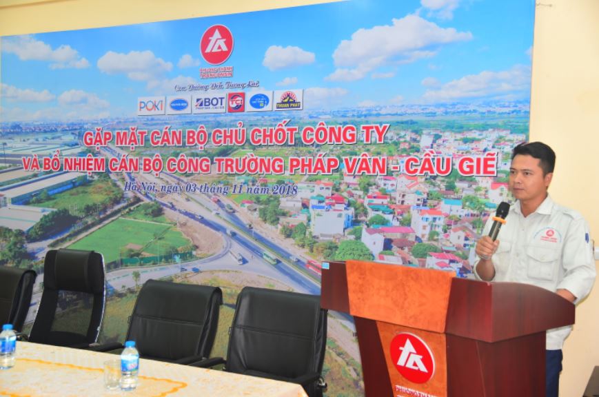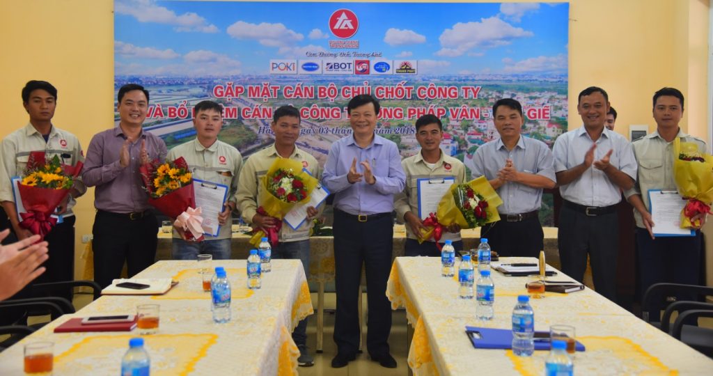 Chiều thứ 7 (ngày 3/11/2018), trong không khí mùa thu mát lành đẹp nhất trong năm và đặc biệt là rất thuận lợi cho công tác SXKD, Ban lãnh đạo Công ty đã tổ chức chương trình: Công bố các Quyết định bổ nhiệm Đội trưởng, đội phó Công trường Pháp Vân – Cầu Giẽ và đặc biệt là tổ chức buổi gặp mặt các cán bộ kỹ thuật, lái xe lái máy tiêu biểu của công trường PV – CG để truyền tải ý tưởng, kế hoạch sắp tới của Lãnh đạo Công ty tới CB CNV và để lắng nghe những ý kiến, tâm tư nguyện vọng của anh em công trường.