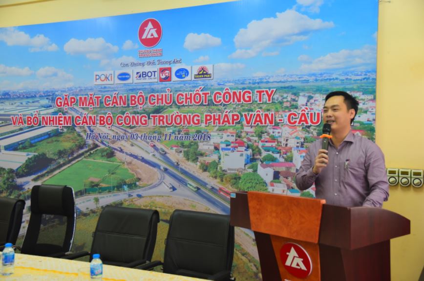Sau phần công bố các QĐ bổ nhiệm, P.TGĐ Vũ Đức Nhận đã phát biểu chúc mừng và giao nhiệm vụ cho cán bộ mới. Anh chính là người Lãnh đạo gần gũi và gắn bó với các kỹ sư, cán bộ kỹ thuật nhất, dõi theo từng bước phát triển của các em ngay từ những ngày đầu đến Công ty phỏng vấn, rồi nhận nhiệm vụ, thực hiện công việc của một CBKT và tiếp theo là một cán bộ phụ trách đội, phụ trách mũi thi công… Thay mặt cho Lãnh đạo công ty, PTGĐ mong muốn các cán bộ được bổ nhiệm tiếp tục phát huy năng lực, nâng cao khả năng quản lý để mang lại hiệu quả cho công ty. Đồng thời phải có trách nhiệm dìu dắt, giúp đỡ các cán bộ trẻ hoàn thành nhiệm vụ được giao.