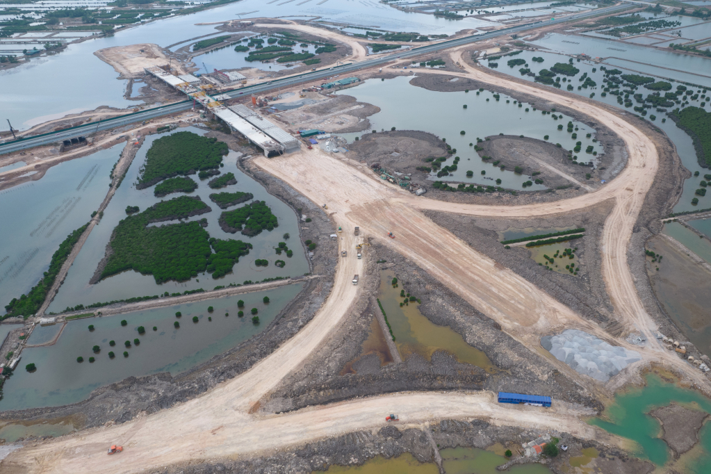 Nút giao Hạ Long Xanh đang được đẩy nhanh tiến độ thi công.