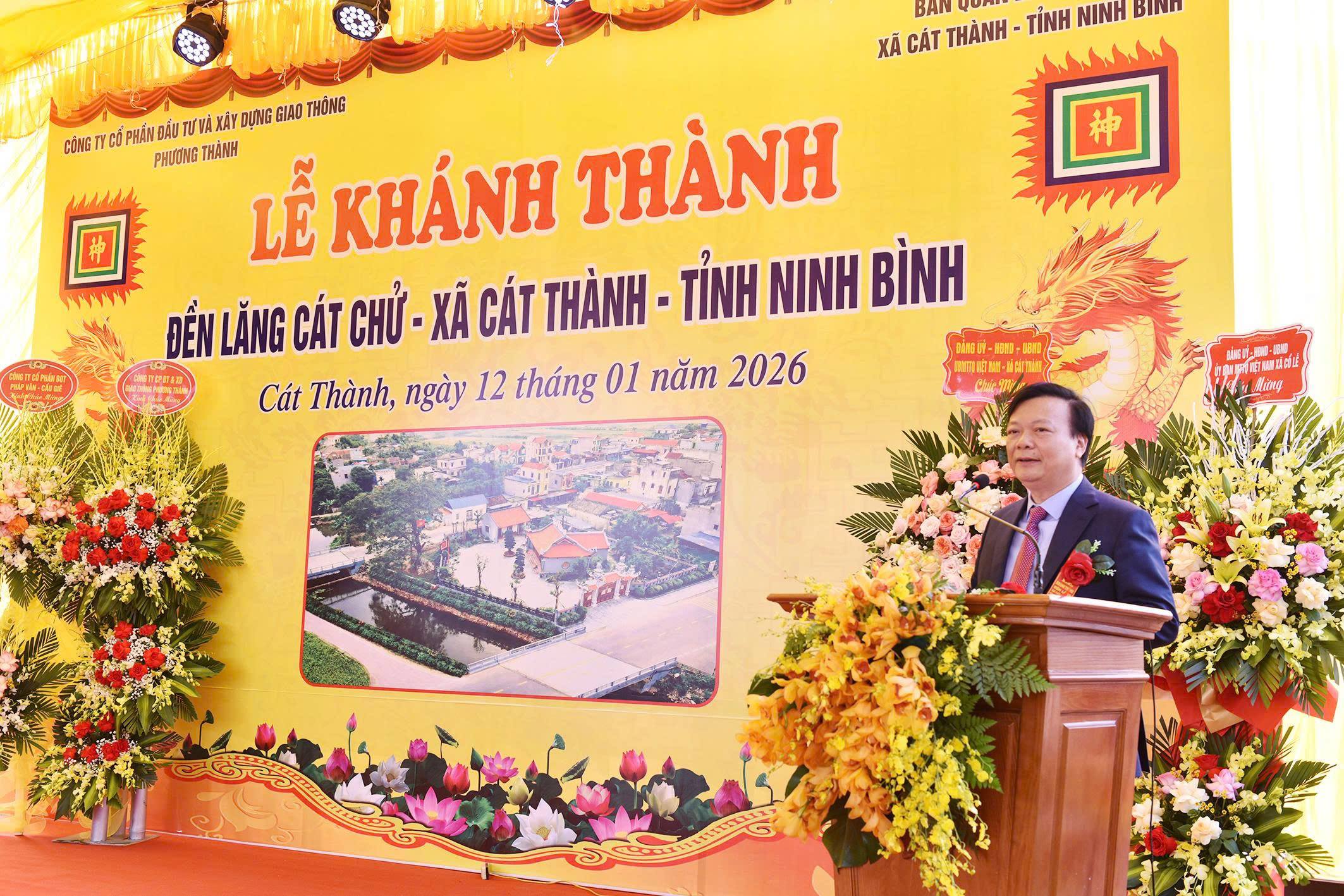 Đền Lăng (làng Cát Chử, xã Cát Thành) là một công trình văn hóa tín ngưỡng tâm linh đặc sắc, mang đậm giá trị lịch sử, truyền thống và thể hiện đạo lý “Uống nước nhớ nguồn” cao đẹp của quê hương. Lễ khánh thành Đền Lăng (11/1/2026) vừa qua không chỉ là một sự kiện văn hóa có ý nghĩa sâu sắc, mà còn khẳng định sự quan tâm, chỉ đạo sát sao của cấp ủy, chính quyền địa phương trong công tác bảo tồn, phát huy giá trị di sản văn hóa tín ngưỡng.