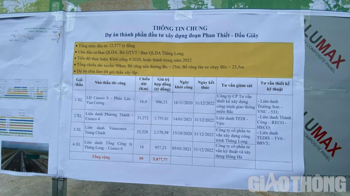 Đại diện Ban quản lý dự án Thăng Long cho biết, tuyến cao tốc Dầu Giây – Phan Thiết có chiều dài 99km, tổng mức đầu tư 12.577 tỷ đồng, quy mô 4 làn xe ô tô và 2 làn dừng khẩn cấp hai bên. Giá trị sản lượng thực hiện của dự án hiện nay đạt trên 77%.