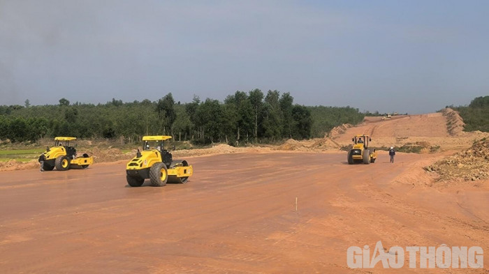 Theo ông Trường, mũi đào đắp nền đường tại gói này khá thuận lợi khi các đơn vị tận dụng được nguồn vật liệu đất đắp tại hiện trường, không phải phụ thuộc bên ngoài nên tiến độ đang được đẩy nhanh nhất có thể.